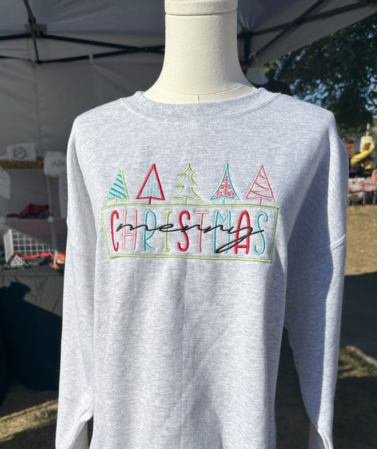 Embroidered Merry Christmas w/ 6 trees Sweatshirt