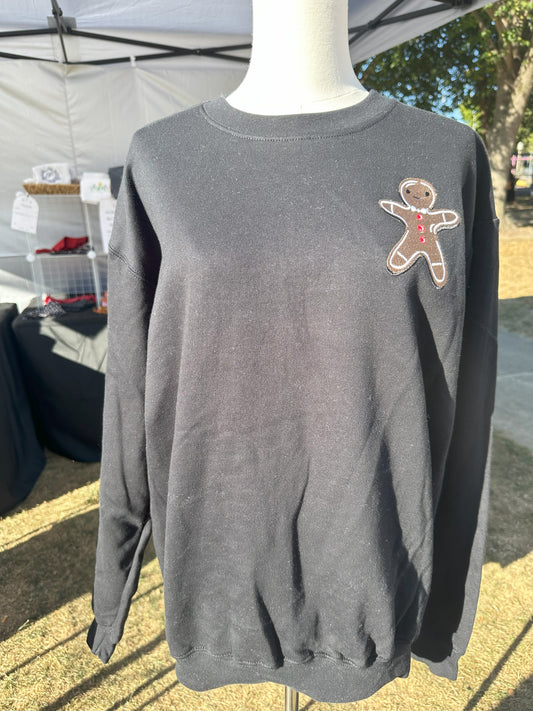 Embroidered Left Chest Gingerbread Man Sweatshirt